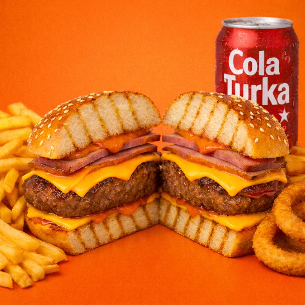 + Patates Kızartması, Halka Soğan ve Kutu İçecek ile Birlikte Servis Edilir.